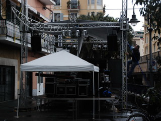 Danilo Daita, incaricato dagli organizzatori di preparare gli spettacoli, dopo aver ricevuto la richiesta dal Comune di far intervenire la Commissione di Vigilanza, necessaria in caso di concerti, ha deciso di far smontare le due strutture (nelle foto) e rinunciare agli spettacoli. “Se avessimo saputo prima della necessità della commissione di vigilanza ci saremmo attivati – ha detto – ma ora è troppo tardi. Facendo la richiesta oggi, forse potremo andare in onda sabato e non serve più a nulla. La trasmissione che doveva essere trasmessa da Sanremo era ‘A casa di Nadia’, con l’ex miss Italia, Nadia Bengala.