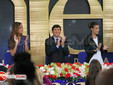 Un palco delle conferenze addobbato per i 150 anni dell’Unità di Italia con fiori bianchi, rossi e verdi. Notato da tutti ma sottolineato a gran voce da Mario Luzzato Fegis del Corriere della Sera che ha sollecitato i conferenzieri e tutti i giornalisti in sala stampa ad alzarsi per rendere onore alla bandiera italiana. Ne è seguito un lungo applauso a mo’ di standing ovation.