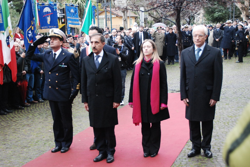 Bagno di folla per i Ministri Ignazio La Russa e Giorgia Meloni, questo pomeriggio al Chiosco Ruffini tra l’omonima via e corso Orazio Raimondo a Sanremo, in occasione della deposizione di una corona al monumento di tutti i Caduti. La cerimonia si è svolta nell’ambito delle celebrazioni del 150° anniversario dell’Unità d’Italia, anticipato appositamente di un mese per il Festival di Sanremo.