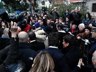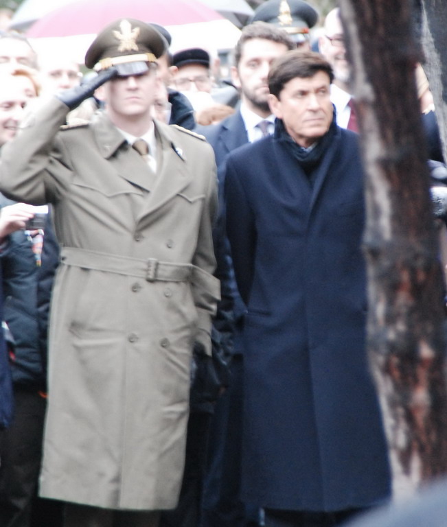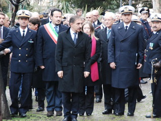I due Ministri sono stati accolti dal Sindaco di Sanremo, Maurizio Zoccarato, e dal Prefetto, Francescopaolo Di Menna. Presenti le massime autorità civili e militari cittadine e provinciali. Il Ministro La Russa ha deposto la corona insieme a due Carabinieri in alta uniforme, di fronte ai militari ed alle associazioni schierate. Sono arrivati anche Gianni Morandi e Gianmarco Mazzi, in rappresentanza della Rai. Poche le parole del Ministro (l'audio cliccando QUI): “Credo che sia stato veramente bello questo incontro tra celebrazioni e musica - ha detto - In fondo la musica è stata sempre un grande elemento di unione per l'Italia. Vedere le Frecce Tricolori è sempre una grande emozione anche se in forma ridotta, con soli tre aerei, perchè siamo in un momento in cui non sono in programma esibizioni". Ma poche anche quelle di Gianni Morandi (l'audio cliccando QUI): “Siamo a un mese dal 17 marzo. La speranza di oggi è quella di fare una serata in cui ci si unisce con la musica”.