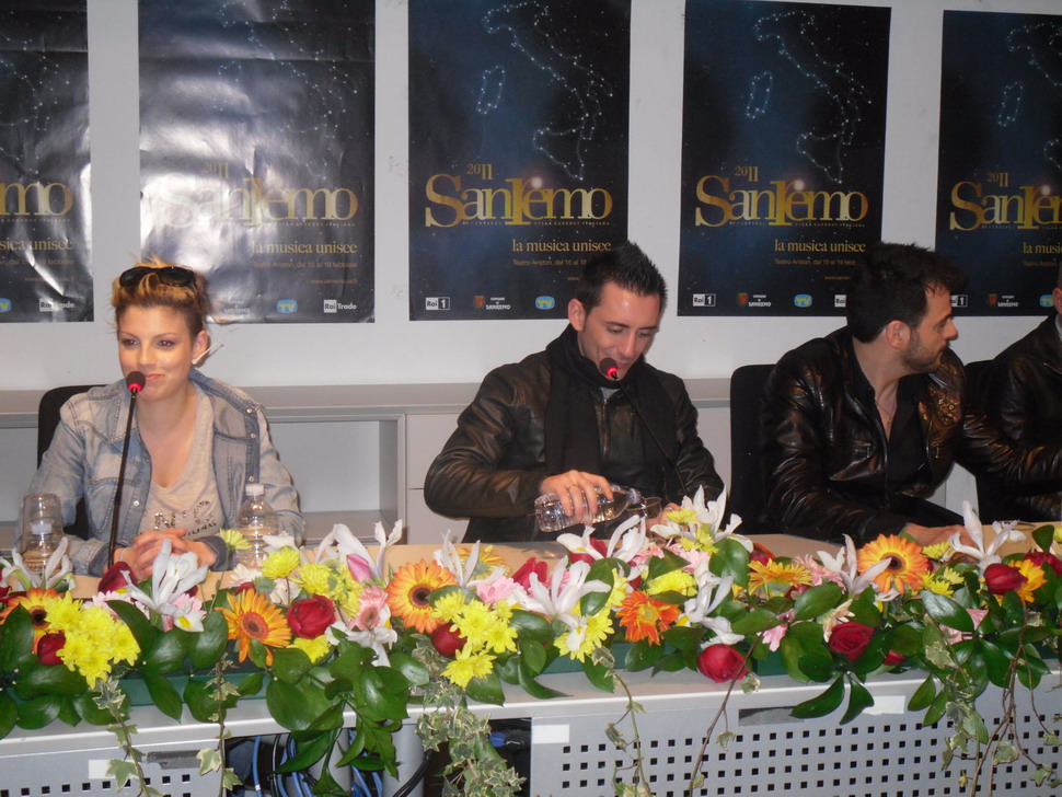 Sono arrivati in sala stampa al Palafiori, accompagnati da Francesco Renga, i Modà ed Emma. Stasera, infatti, con loro ad esibirsi sul palco dell’Ariston, ci sarà anche il cantante vincitore dell'edizione 2005 con il brano “Angelo”.