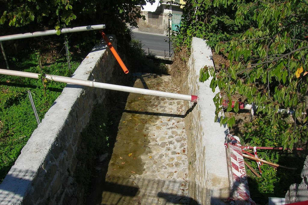 Sono state inoltre sistemate le sponde del corso d’acqua, riordinandole dal punto di vista della pulizia da piante e cespugli, ricostruendo gli argini con murature in pietra, assestando le briglie (cascate) ed il letto, onde evitare il più possibile il rischio di erosione e di esondazione in caso di pioggia eccezionalmente intensa. Si è infine proceduto alla regimazione delle acque del versante destro del rio Nerussi nel tratto a monte dell’incrocio con la strada omonima, sempre al fine di contenere un ulteriore dissesto idrogeologico.