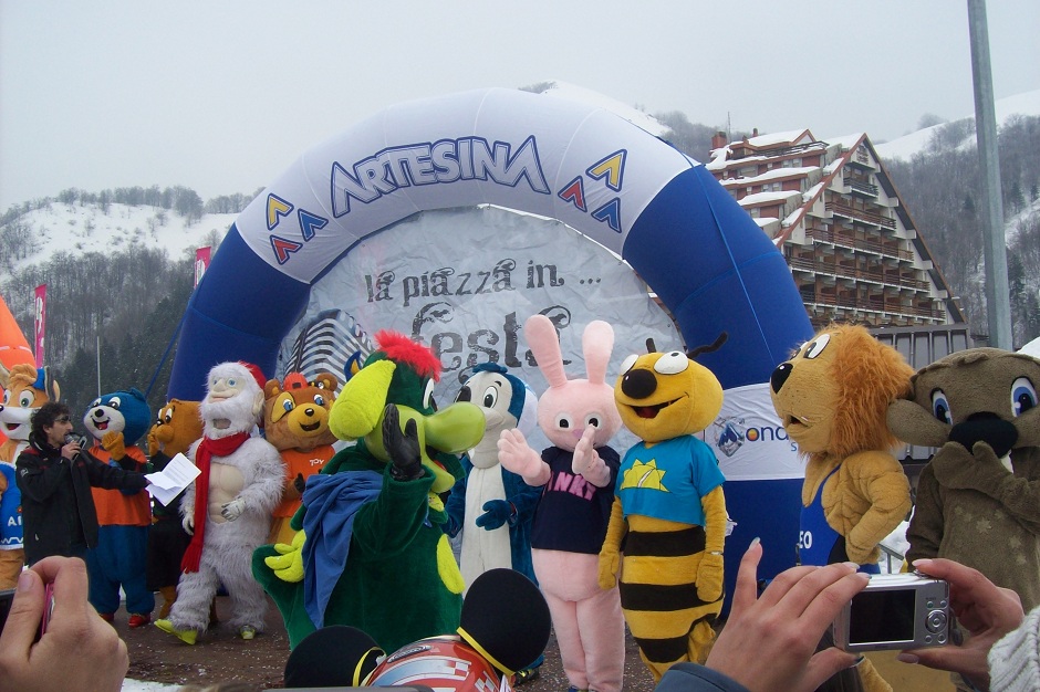 Grande successo per il “6° Raduno Nazionale della Mascotte sulla neve” che martedì 8 marzo ad Artesina ha visto la partecipazione di ben 22 mascotte provenienti da tutta Italia. Protagoniste dell’evento tra le altre - oltre alle mascotte simbolo del territorio del Mondolè ski da "Pinky" che ha fatto gli onori di casa a "Mondolotto" in rappresentanza di Pratolandia a "Leon" del parco giochi di Frabolandia - "Prezzemolo" di Gardaland, "Splaffy" dell'Acquario di Genova, "Grifo" del Genoa Calcio, “Eagle” l’aquilotto della Bre Banca Lannutti Cuneo ed in anteprima la mascotte del Savona Calcio.