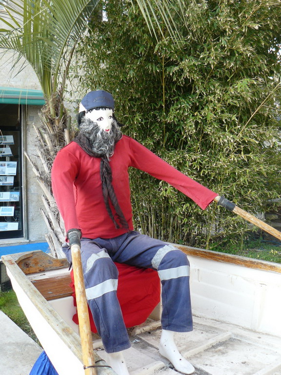 “A parte la riduttività di rappresentare le imbarcazioni dei mille con un piccolo gozzo da pesca, ma questo è una comprensibile ‘sineddoche’. I due personaggi esposti rappresentano caratteristiche tali da renderli causa di possibili turbe se mostrati ad esempio a una scolaresca in gita o comunque ai minori di 12 anni. Le fattezze femminee urtano in modo disturbante con l'abbigliamento da operatore ecologico, nel senso che proprio così sono agghindati i nostri. Le mani delicatamente femminili di uno dei garibaldini sono palesemente in attesa di uno strato di lacca rossa sulle unghie mentre quelle di chi sta alla voga gli sono state amputate e cucite ai remi perchè non mollasse capra e cavoli. Le barbe e i capelli hanno il colore e la consistenza della lanugine polverosa che giace sotto i divani o i letti delle seconde case in buona parte quasi ormai abbandonate. La posizione del remigante mostra che lui (lei?) sta remando all'indietro (forse una subliminale dimostrazione di ostilità dell'esecutore all'impresa?), infatti dall' espressione si capisce che non sa quello che sta facendo oppure è angosciato dalla tragica fine che già intravvede. Lo scetticismo sull'esito dell'impresa è testimoniato anche dalle folte barbe palesemente artificiali alla fratelli Marx, che vogliono nascondere l'identità dei due. In contrasto con quanto suesposto il trucco da ‘Peep Show’ degli occhi del personaggio a prua; il suo sguardo bramoso potrebbe farlo (...la?) accusare di adescamento, è in caccia evidente di qualche ingenuo da spennare (altra allusione a un poco edificante fine dell'impresa?). La ricorrenza sacrosanta dell'Unità d'Italia sta già incontrando variegati atteggiamenti anche al di fuori del popolo della Lega, cerchiamo di non ridicolizzarla con rappresentazioni senza senso e inferiori al grado zero del buon gusto”.