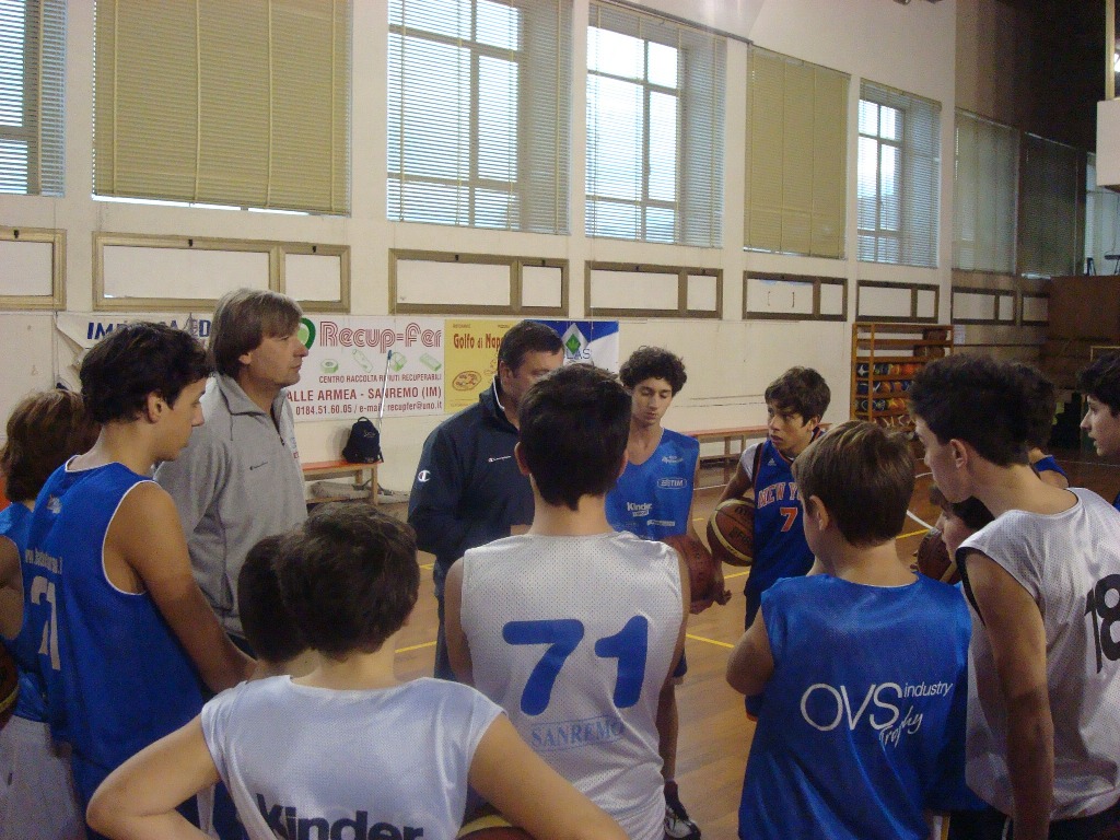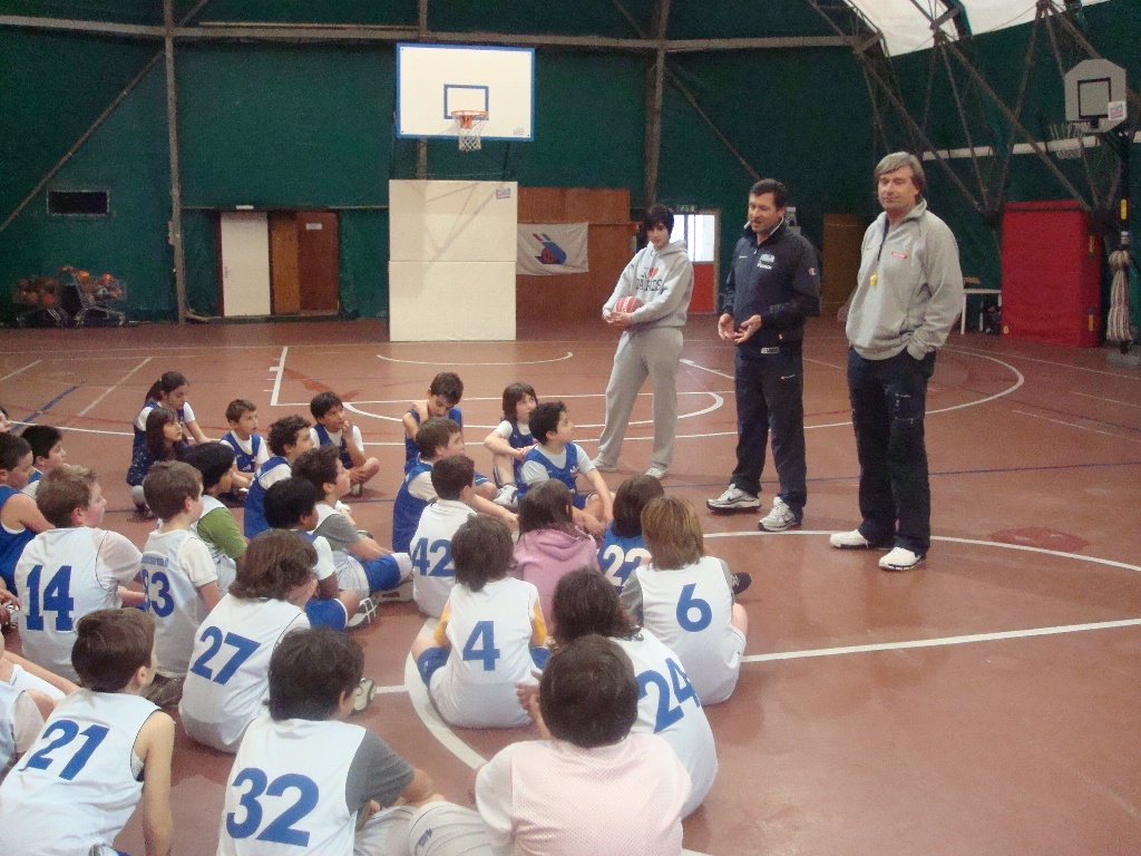 Grande entusiasmo dei piccoli cestisti del Sea Basket Sanremo Anna tessuti per la visita dell'allenatore della nazionale Under 18 Stefano Bizzozi.