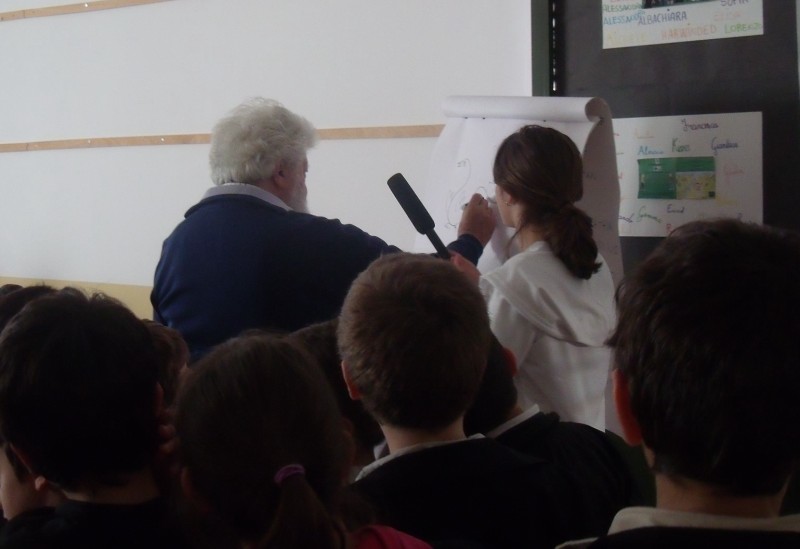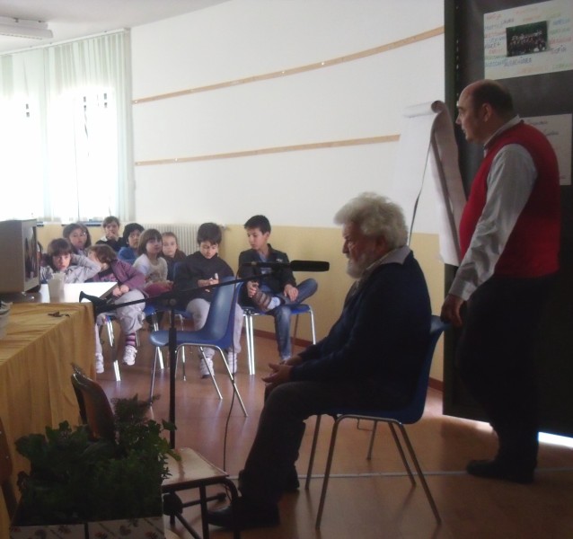 Dopo le cerimonie del mattino con la presenza dei rappresentanti della Comunità Montana del Ponente Savonese e della Provincia di Savona, nel pomeriggio presso la sala multimediale della scuola gli alunni hanno incontrato Libereso Guglielmi, botanico di fama internazionale e conosciuto come il “giardiniere di Calvino”. Durante l’incontro, condotto dal giornalista Claudio Porchia, Libereso ha spiegato le proprietà medicinali di alcune piante aromatiche messe a disposizione dai Vivai Montina, ha disegnato riscuotendo grandi applausi ed ha risposto alle numerose domande dei ragazzi.