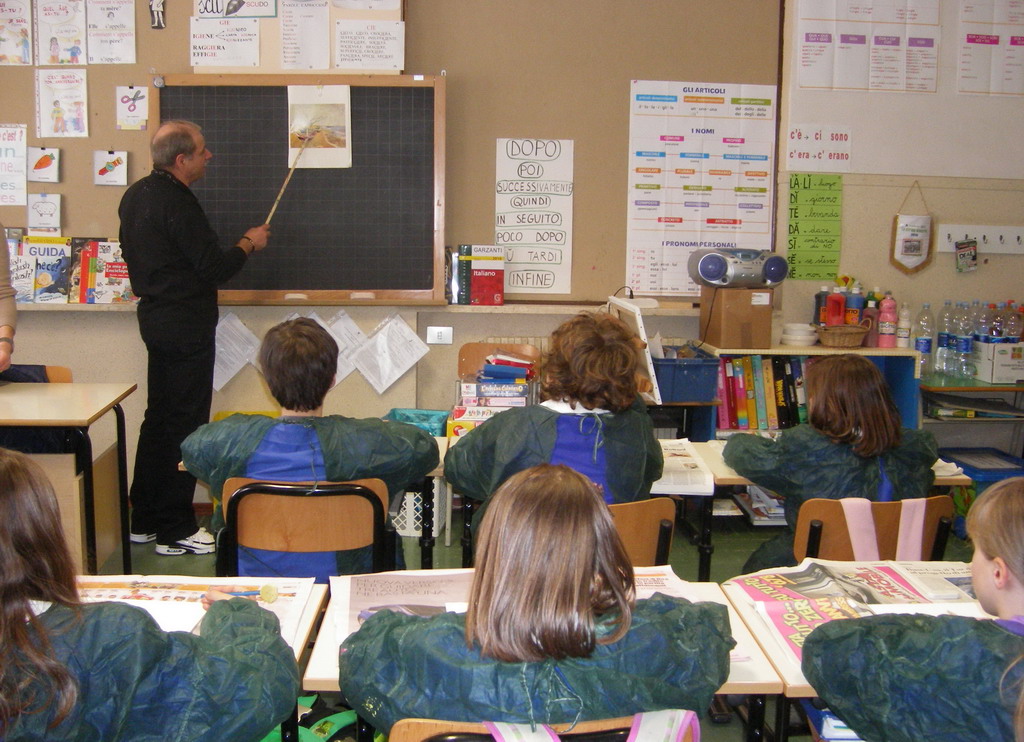 Bellissima esperienza quella vissuta da noi alunni della classe quarta della scuola primaria di San Pietro, Sanremo. Su iniziativa delle nostre maestre Silvia e Marilina, alcuni giorni fa è venuto il pittore Mario Borella che ha tenuto per noi una lezione di pittura, alla quale ne seguiranno altre.