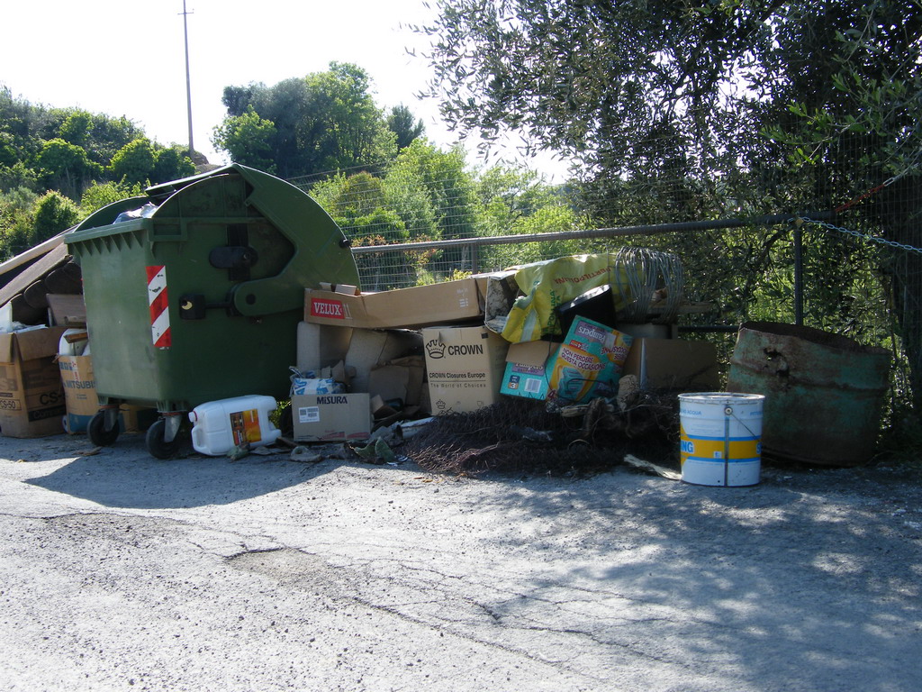 "Invio due immagini scattate nell'immediato entroterra di Porto Maurizio, tra la chiesa di San Benedetto (Artallo) e la frazione di Massabovi. Come si vede, di fianco ai cassonetti dei rifiuti, è stato ammucchiato di tutto (divani, carriola, materiale plastico, metallico, vetro, cartoni,ecc.). E' una situazione che si ripete puntualmente; purtroppo è molto difficile trovare i responsabili. Speriamo solo che l'Eco Imperia riesca a rimuovere il materiale prima di Pasqua, quando la strada, definita panoramica, sarà passaggio (meteo permettendo) di numerosi turisti".