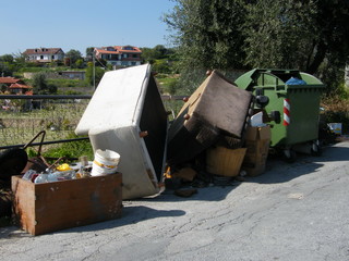 "Invio due immagini scattate nell'immediato entroterra di Porto Maurizio, tra la chiesa di San Benedetto (Artallo) e la frazione di Massabovi. Come si vede, di fianco ai cassonetti dei rifiuti, è stato ammucchiato di tutto (divani, carriola, materiale plastico, metallico, vetro, cartoni,ecc.). E' una situazione che si ripete puntualmente; purtroppo è molto difficile trovare i responsabili. Speriamo solo che l'Eco Imperia riesca a rimuovere il materiale prima di Pasqua, quando la strada, definita panoramica, sarà passaggio (meteo permettendo) di numerosi turisti".
