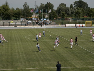 Padroni di casa pericolosi, soprattutto con Kabine che sulla fascia corre come un indiavolato dando non pochi problemi all difesa ospite, in una partita finora molto veloce e maschia da ambo le parti. A fine primo tempo, il solito kabine mette i brividi con un diagonale insidioso che viene controllato da Orlandi. Come gioco le due squadre appaiono equlibrate, anche se la Sacilese per ora ha giocato in maniera più attiva e spregiudicata rispetto ai liguri.
