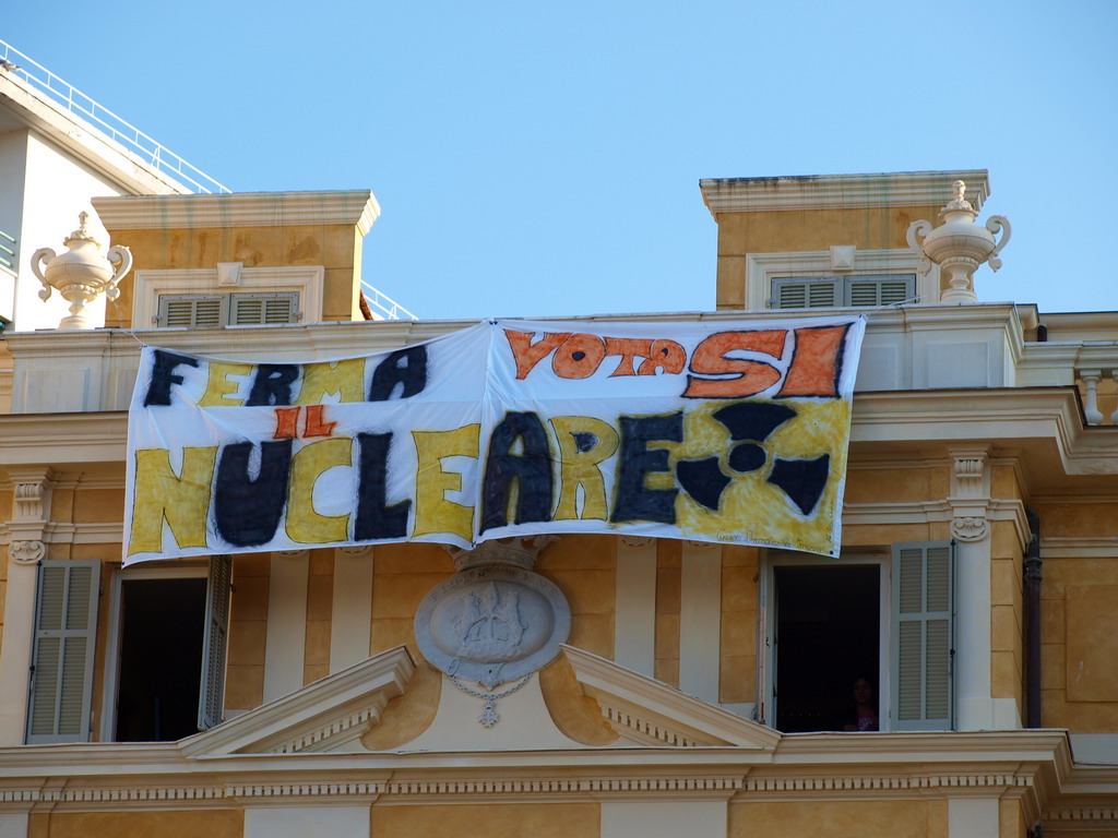 E' scattata, questa mattina all'alba, l'operazione denominata 'Democrazia all'Alba', che ha coinvolto una delegazione di Giovani Democratici della provincia di Imperia. E' stato srotolato, intorno alle sette e quaranta, uno striscione contro il ritorno al nucleare sulla terrazza di Villa Magnolie, sede distaccata del triennio del Liceo.