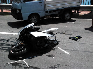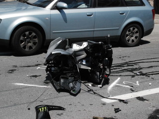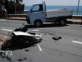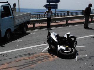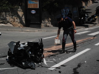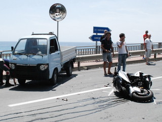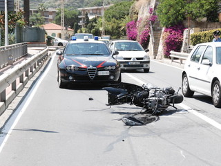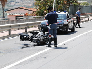Il TMax sul quale viaggiava si è letteralmente spezzato in due, nell'impatto con un Piaggio Porter che stava svoltando da strada Valdirodi.