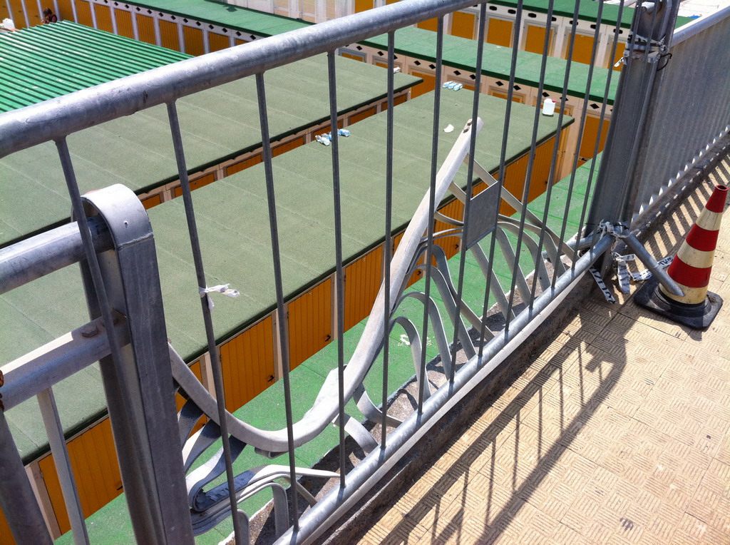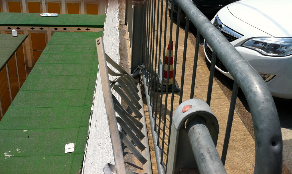 "buongiorno vorrei mostrare due foto di una ringhiera situata sul lungomare Vittorio Emanuele a Sanremo. Durante il forte vento di quest'inverno era caduta una palma, nell'impatto aveva divelto la ringhiera. E' possibile che in una città di mare come la nostra, a luglio la ringhiera non sia ancora stata sostituita?"