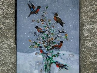 Insieme a lei è arrivato un tenero quadro del conosciutissimo pittore torinese Nando Eandi, assente giustificato, per chiudere una piccola finestra sotto uno dei tanti passaggi. La sua arte matura ci ha consegnato un “Paesaggio invernale” innevato, ma che mostra come sia imminente il momento del rinnovarsi della vita attraverso svolazzanti pettirossi che sostano su un albero pronto a far esplodere le sue gemme. Messaggio d’amore per la natura che ad ogni stagione si rinnova per stupirci sempre.