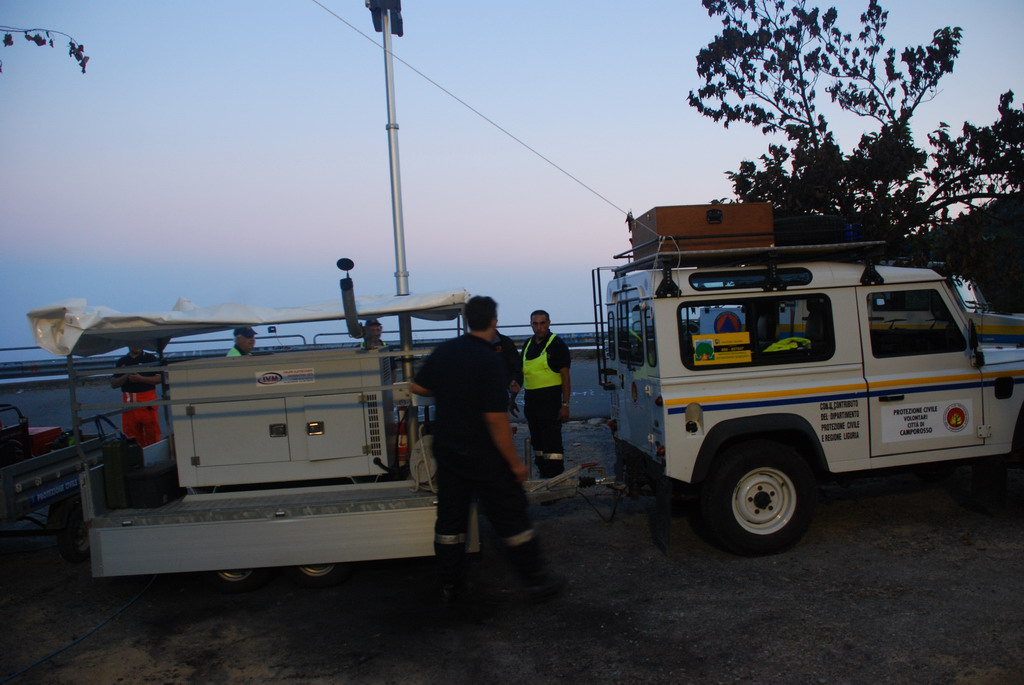 Si è svolta nella nottata di sabato l'esercitazionecongiunta del COS, tra le associazioni di Protezione Civile di Sanremo, Camporosso ed Ospedaletti denominata "Una luce nel bosco". Questa esercitazione ha avuto come scopo l'illuminazione di una vasta parte di area boschiva in località Marzocco, alle spalle di Sanremo, mediante i gruppi elettorgeni e dalle torri faro in dotazione alle diverse squadre di protezione civile.
