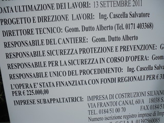 Il costo dell’opera si aggira sui 535.000 euro, la quale è stata finanziata per 225 mila euro dal Comune di Bordighera e, il restante dell’importo, è stato coperto con fondi regionali. Secondo il progetto i lavori dovrebbero essere ultimati il 13 settembre di quest’anno. E’ probabile, però, uno slittamento dei tempi, in considerazione del fatto che a metà a agosto i lavoratori dovrebbero avvalersi del periodo di ferie stagionale.