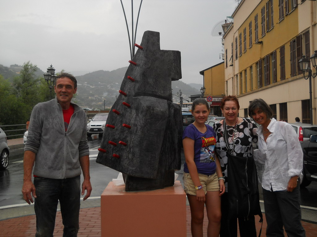 Il titolo dell'opera è 'Dance in the Old Fashioned Way'. E' in ardesia ed è stata eseguita nel 2007 a Molini di Triora. Recentemente è stata esposta per 2 mesi al Museo di Scultura di Mentone. La cerimonia di inaugurazione è stata fissata dal Sindaco Scullino per sabato prossimo.