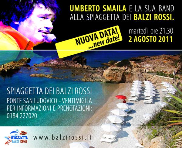 Martedì prossimo alle 21.30 Umberto Smaila e la sua band, si esibiranno nella splendida cornice della 'spiaggetta' dei Balzi Rossi, a pochi passi dalla frontiera di Ponte San Ludovico in località Grimaldi al confine con la Costa Azzurra.