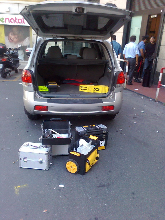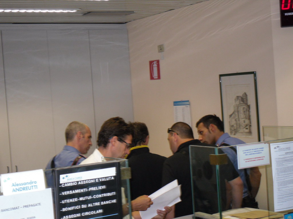 Una donna, che aveva avuto forse una reazione, è stata colpita alla nuca con il calcio della pistola, una beretta. Gli altri sette soggetti presenti in banca sono stati legati con alcune fascette da elettricista.