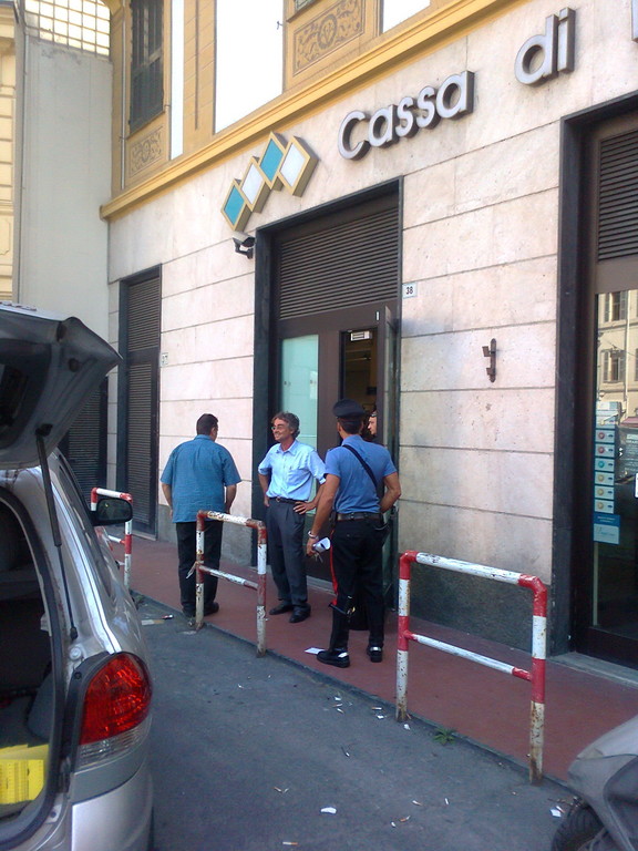 Rapina a mano armata alla Banca Carige di Piazza Eroi: ostaggi legati e una donna ferita, la banda fugge con bottino di 9 mila euro