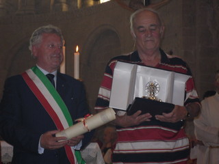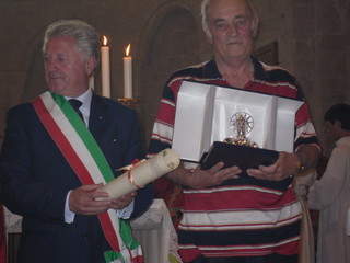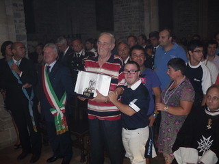 In una cattedrale stracolma di persone, a Ventimiglia Alta, è stato consegnato stamani, al Presidente della Spes Auser (associazione di parenti ed amici di portatori di handicap), Luciano Codarri il San Segundin d’Argento.