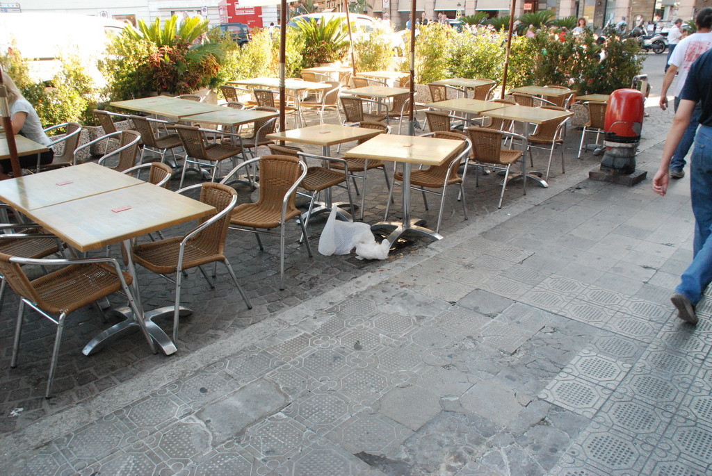 Un'anziana donna che stava camminando di fronte al Mc Donald's è inciampata su una piastrella pericolante ed è caduta a terra. Ha riportato qualche escoriazione e la sospetta frattura del naso.