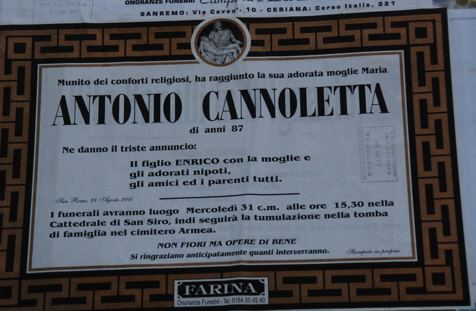 Sanremo: scomparso domenica scorsa a 87 anni lo storico gioielliere Antonio Cannoletta, domani i funerali