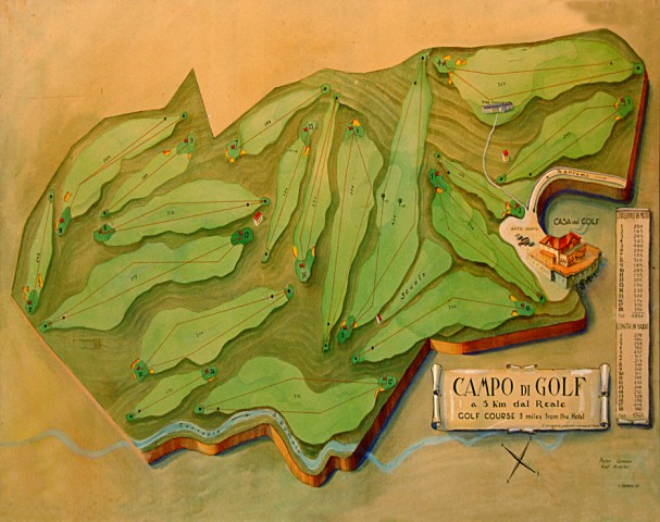 Con le sue 18 buche fu da subito, l’unico aperto per tutto l’anno e molti giocatori con, o senza i capelli bianchi, ricordano ancora le gare fra i migliori maestri dell'epoca sui percorsi sinuosi disegnati da Peter Gannon uno dei più famosi Golf architect inglesi dell’epoca, che vediamo nella foto seguente: