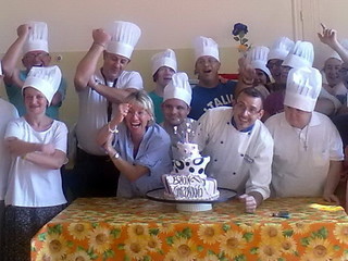 Di certo l'entusiasmo non manca e l'occasione non ha tardato a presentarsi (il compleanno di un'operatrice), ed ecco che stamattina, in pochi minuti, i locali dell'Anffas Onlus di Sanremo si sono trasformati in un laboratorio di pasticceria attrezzato a puntino per preparare qualsivoglia tipo di dolce ghiottoneria.