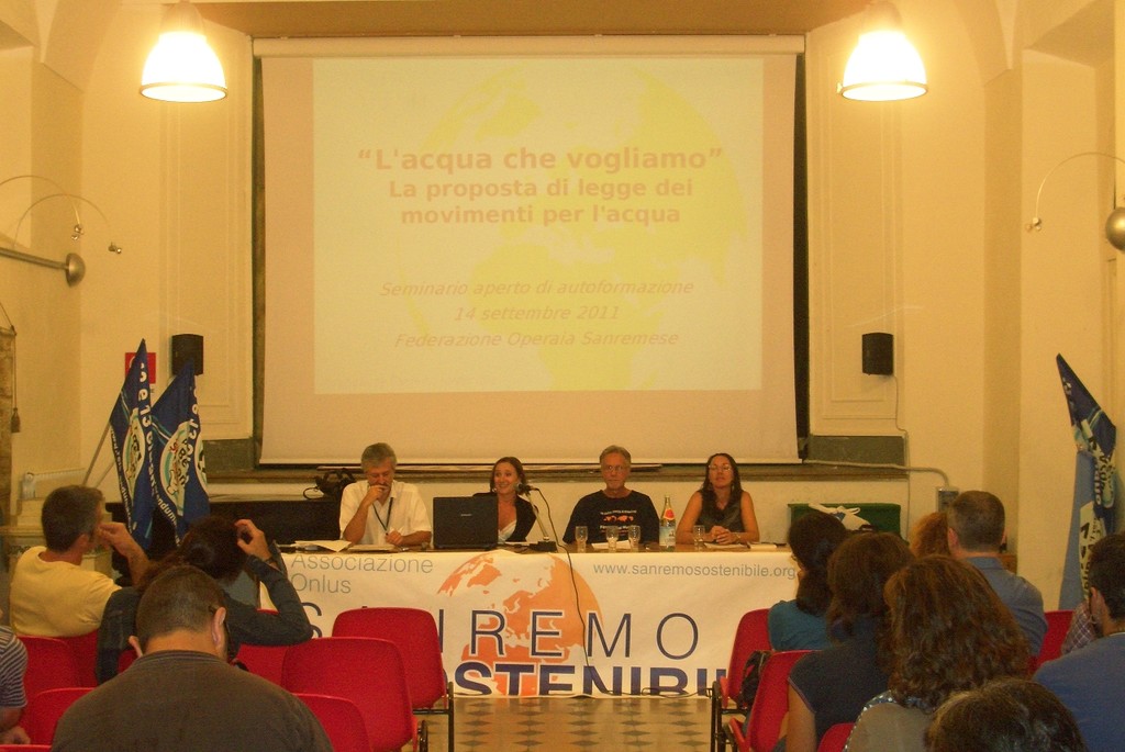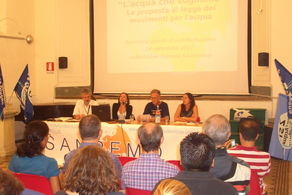 Si è svolto ieri sera, mercoledì 14 settembre, presso la FOS di Sanremo l'incontro 'L'acqua che vogliamo': un seminario di auto-formazione durante il quale è stato presentato e discusso il testo della proposta di Legge di iniziativa popolare per il governo, la gestione e la ripubblicizzazione del servizio idrico in Italia.