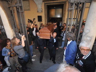 Genova: tanta gente all'ultimo saluto per Pepi Morgia, c'erano anche Baccini, Dori Ghezzi e Alberto Fortis