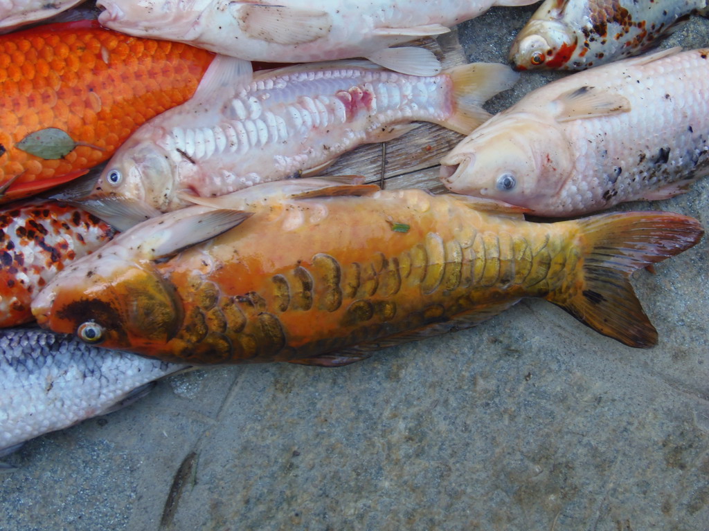 "Scrivo per darvi gli ultimi aggiornamenti sul laghetti. Ad ora l'ammontare delle Carpe morte è di 223 esemplari, fortunatamente le tartarughe sono vive e sono state immediatamente spostate in una parte del laghetto con acqua pulita... speriamo non gli succeda niente...