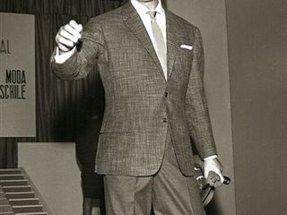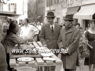 Rimaniamo in tema di cinema e moda: l'indossatore di mezza età, Di Maggio, che qui vediamo sfilare a Sanremo, ottenne una piccola parte nel film "La dolce vita"
