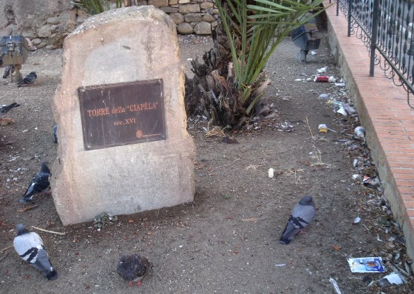 In un altro libro dal titolo, “Castello di S.Romolo – Illustrazione di antichi documenti riferentisi al Castello di S.Romolo” riparla della torre Ciapela riferendo di un contenzioso tra gli occupanti e l’Arcivescovo genovese avvenuto nel 1218. Scrive il Canepa : “TORRE utilizzata tramite scala per scendere ad una fontana posta tra l’archivolto ed il Bastione. E nel 1130 arrivano le galee genovesi (Caffaro Annali). E’ da ritenere che la ‘fonte’ e lo ‘accesso’ al Castrum dal Vico Ciapela sono le ragioni protettive alle incursioni saracene per le quali i genovesi hanno localizzato la Torre circolare accostata alla Torre quadrangolare eretta dai sanromolesi in epoca precedente (nel XII e/o X secolo, l’acqua è vita ed utilizzata per costruire la Torre ‘Extra mura’ contribuendo, ai piedi, alla difesa dell’abitato di monte”