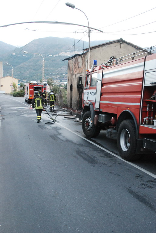 Incendio di un casone abbandonato nella zona di via Del Piano tra Arma di Taggia e Taggia. Intorno alle 5.30 alcuni automobilisti di passaggio hanno visto le fiamme ed hanno dato l'allarme ai Vigili del Fuoco di Sanremo.