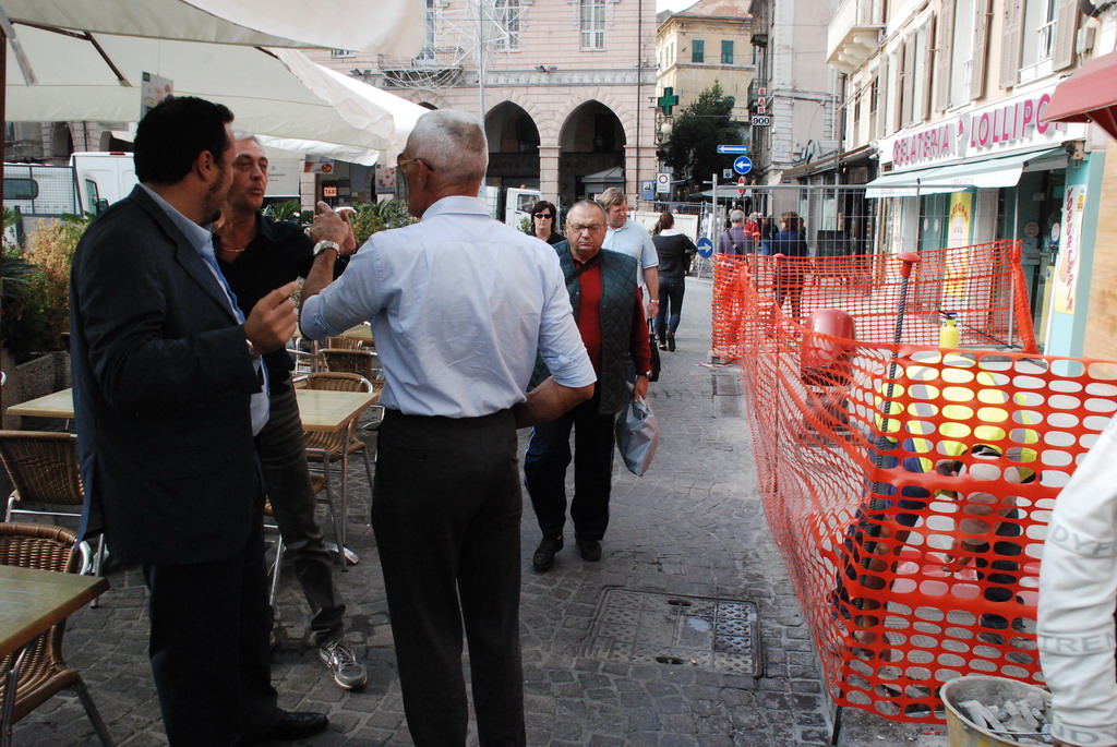 Il primo cittadino ha svolto oggi un paio di sopralluoghi sui lavori in corso sulla strada per Verezzo ed al marciapiede della piazza. Durante la visita ha criticato la situazione di dehor e parcheggi.
