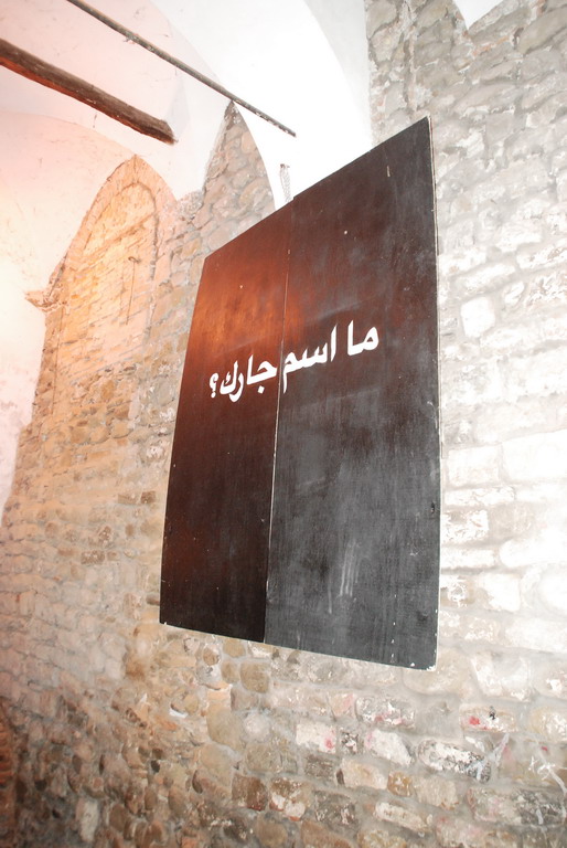 Nelle scorse settimane è apparso un cartello nella città vecchia di Sanremo, in rivolte San Sebastiano. Si tratta di un pannello di legno nero con una scritta in arabo, bianca.