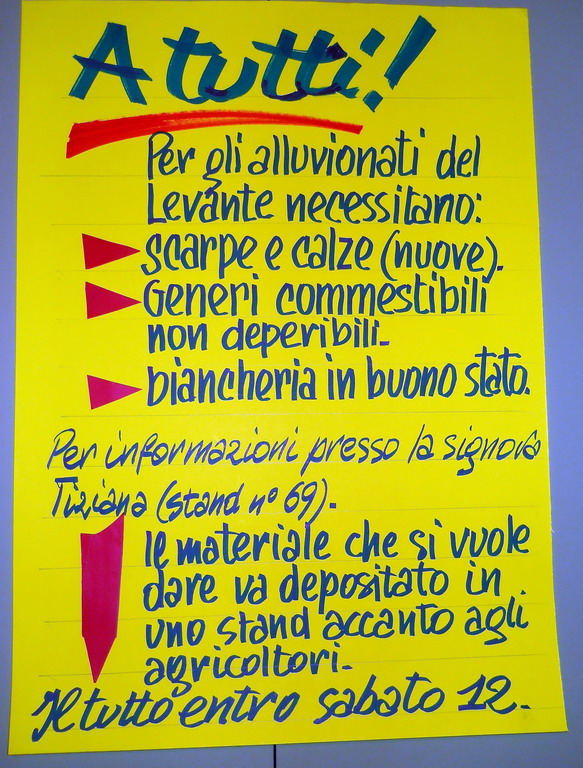 Molti commercianti di Sanremo si stanno adoperando per aiutare gli alluvionati del Levante ligure. Al Mercato Annonario e in diverse zone della città sono presenti i cartelli che invitano i sanremesi ad aiutare le persone colpite dal maltempo nel genovesato e nello spezzino.