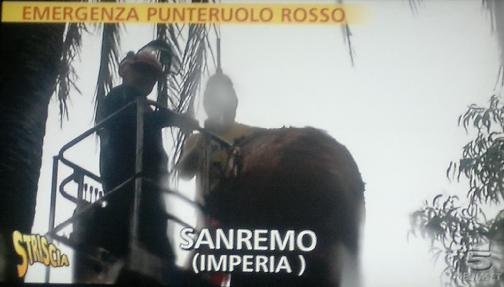 E' andato in onda ieri sera, all'interno della trasmissione 'Striscia la Notizia', il servizio realizzato nei giorni scorsi a Sanremo, dall'inviato 'Capitan Ventosa'. Ancora una volta protagonista il Punteruolo Rosso e le palme.