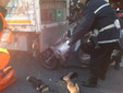 Abbagliato dal sole, con il suo scooter ha investito un giovane che stava scaricando delle bibite.