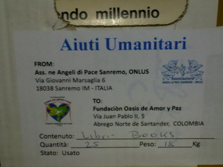 "La raccolta umanitaria voluta dall'associazione Angeli di Pace Sanremo onlus a favore della Fundacion de Amor y Paz in Colombia si è conclusa: abbiamo riempito il primo container". Ad informare sul risultato di questa azione umanitaria è Marco Griseri, portavoce dell'associazione matuziana, che spiega: "Partirà alla volta della Colombia il prossimo 28 dicembre dal porto di Vado, il viaggio durerà circa 25 giorni. Ad attenderlo presso il porto di arrivo ci saranno due nostri volontari: Domenico e Giorgio, partiranno da Sanremo a metà gennaio. Sbrigate le non 'facili' pratiche doganali colombiane si occuperanno di far arrivare questo 'grande carico' fino a destinazione: Abrego de Santander sede della Fundacion. Oltre ai generi di vestiario quali pantaloni, maglie, scarpe, biancheria, abbiamo anche lenzuola, coperte leggere, copriletti, ma porteremo anche un trattore con aratro, un trattore taglia erba, attrezzature come trapani, avvitatori, anche macchinari per poter fare salami e prosciutti... tutto donato da persone veramente 'speciali'.