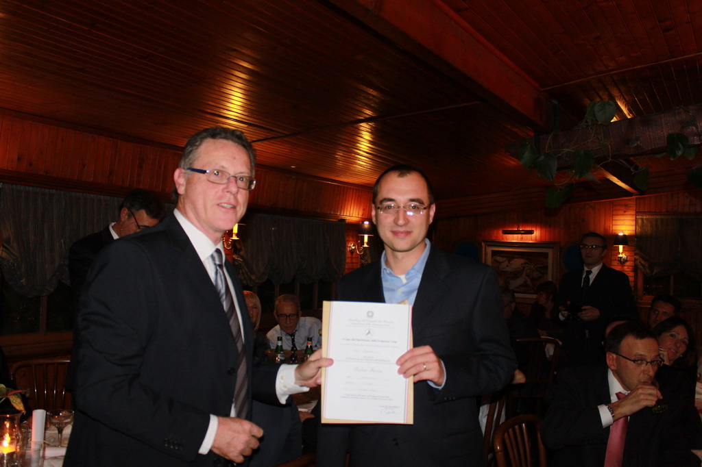La serata si è poi conclusa con il conferimento delle pubbliche Benemerenze del Dipartimento della Protezione Civile per la partecipazione, come volontari, alle verifiche tecniche post sisma 2009 degli Ingg. Luca Amatori, Fulvio Fusini, Sandro Giordano, Stefano Negro e Gian Marco Risso, assente per malattia Diego Donatello, gli attestati sono stati consegnati dall’Ing. Gianni Rolando anche egli premiato, come Presidente Nazionale dal Presidente della Repubblica. Graditi ospiti della serata l’Ing. Claudio Marzocco e signora, iscritto all’Ordine di Imperia, è a capo del prestigioso Gruppo Marzocco che è l’artefice dei progetti più belli ed eleganti del Principato tra cui la Tour Odeon edificio di 170 metri destinato dopo il 2014 a diventare il nuovo emblema della città di Montecarlo.
