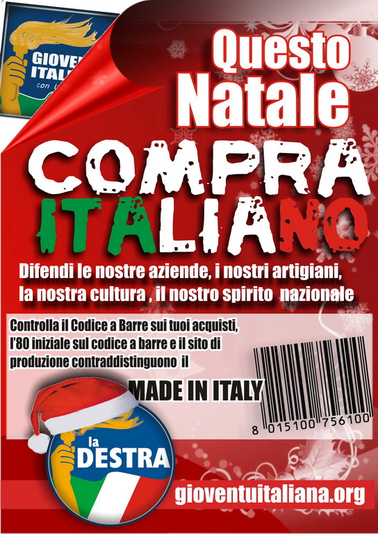 Lo scrive la federazione imperiese de 'La Destra' che prosegue: "Il Made in Italy non è solo una scelta, ma una responsabilità per tutti noi, che contemporaneamente siamo consumatori e produttori. Ecco perchè, ora più che mai, è importante scegliere di comprare prodotti italiani, magari anche a 'chilometri zero' e non di marca, ma autentici e genuini perchè nostrani!"