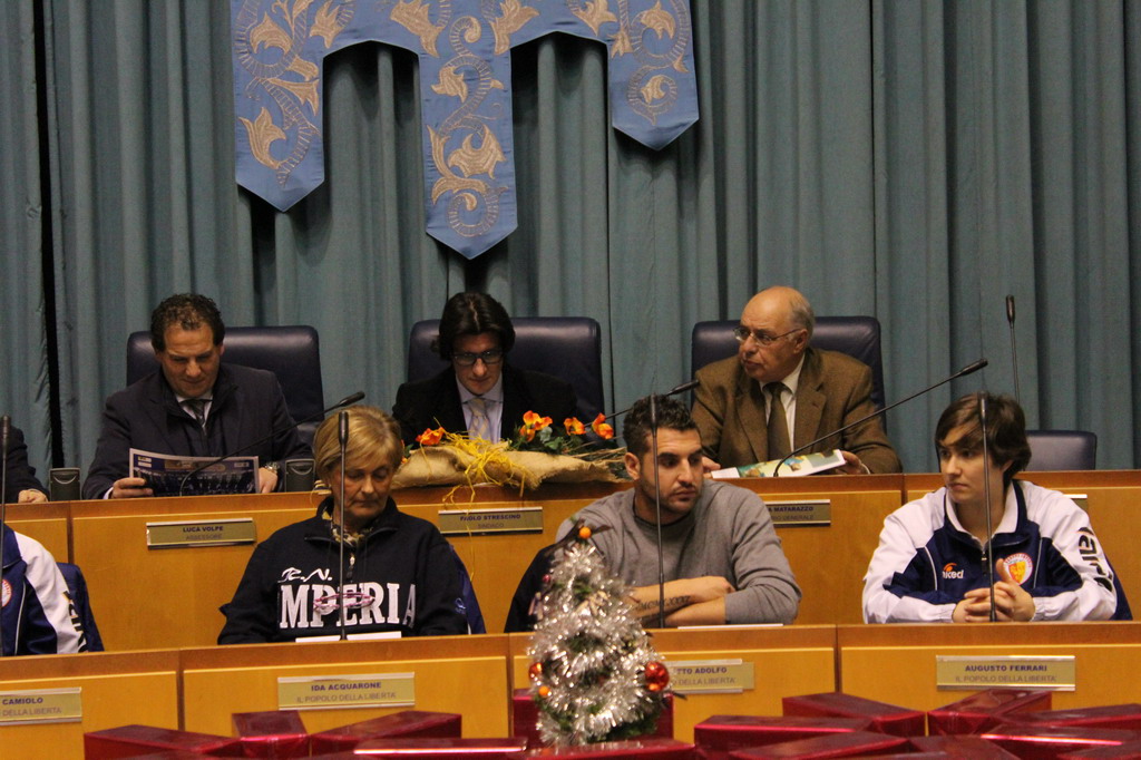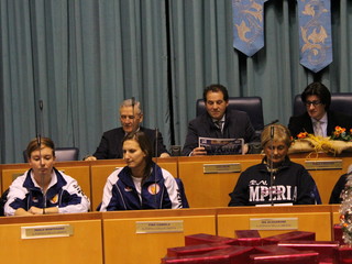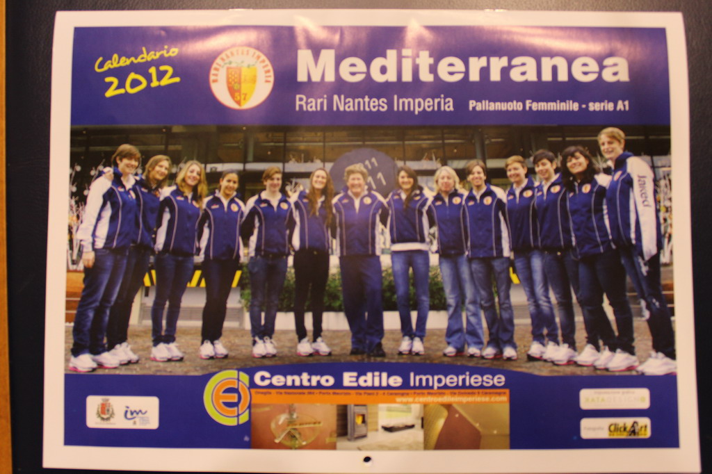Presentato questa sera il calendario 2012 della squadra femminile di pallanuoto "Mediterranea". Presenti alla cerimonia, svoltasi nella sala consiliare del Comune di Imperia, il presidente provinciale del Coni, Ivo Bensa, il sindaco Paolo Strescino, l'assessore allo sport Luca Volpe e il consigliere della società Giovanni Guidotti. Coloro che volessero il calendario si possono recare dagli sponsor o alla piscina Felice Cascione di Imperia.