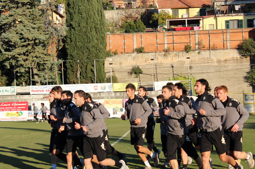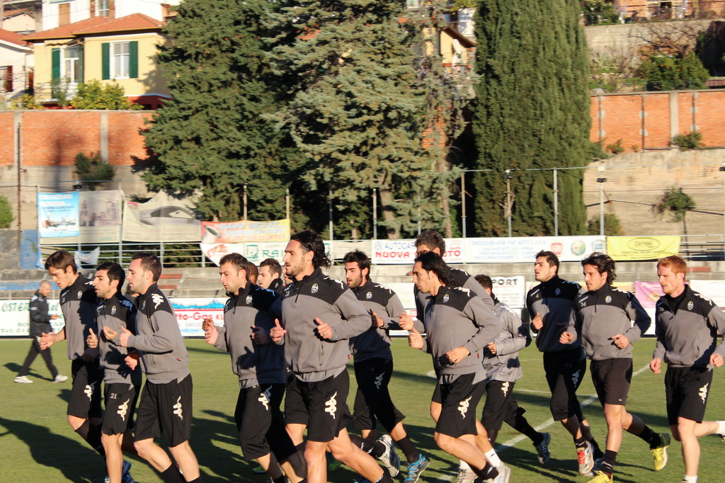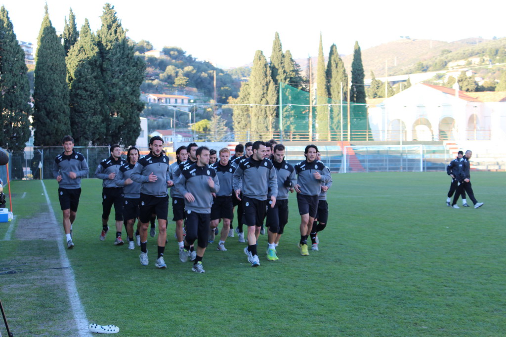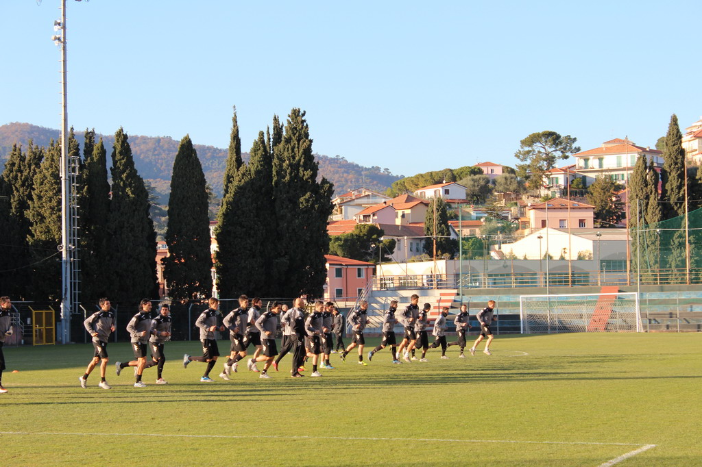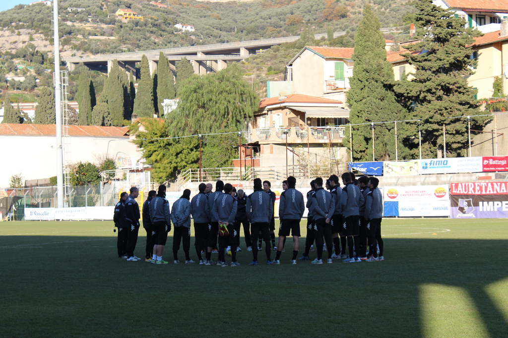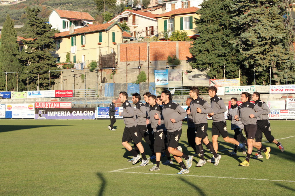 È iniziato con circa 20 minuti di ritardo sulla tabella di marcia il primo allenamento del Siena Calcio allo stadio Nino Ciccione di Imperia. Ad aspettare la squadra toscana diretta dal mister Giuseppe Sannino un gruppetto di ragazzi che hanno chiesto l'autografo ad alcuni giocatori. Dopo la seduta i giocatori e lo staff tecnico parteciperanno al cocktail di benvenuto presso l'hotel Rossini.