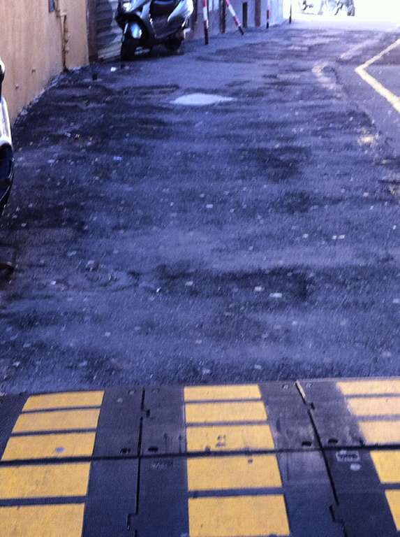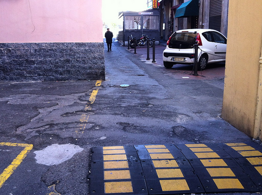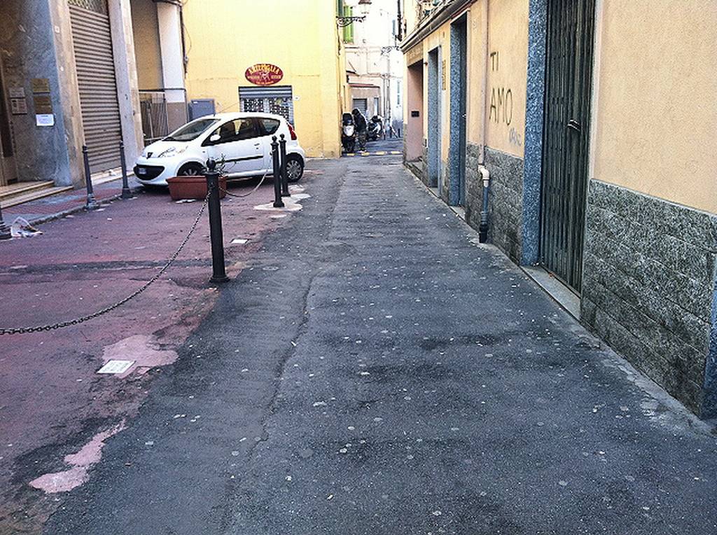 "Leggo solo ora l'articolo di Roberto Pecchinino sul degrado di vicolo Capitan Pesante e sono felice che qualcuno si sia interessato a questa situazione di degrado in pieno centro, che sta sempre più peggiorando. Quando tempo fa il Comune ha fatto installare i due dissuasori di velocità (dossi artificiali) non ha guardato tanto per il sottile e li ha fatti piazzare sulle buche pre-esistenti cementandoli malamente al suolo. Le buche aumentano di numero e continuano a subire l'usura di auto e moto e, soprattutto nella parte verso via XX Settembre, sono ora dventate la vera copertura del vicolo (foto 8). Inoltre, quando piove, si riempiono d'acqua, non si vede più quanto sono profonde, sembrando delle semplici pozzanghere superficiali mentre sono delle vere trappole per caviglie (specie se si hanno dei tacchi), e le storte e le cadute non sono rare. So di almeno due persone che, cadendo, si sono rotte una mano. Spero che il Comune voglia provvedere, anche se il vicolo è frequentato prevalentemente da Sanremesi e non da turisti, e ringrazio in anticipo per un sollcito intervento una gettata di asfalto".