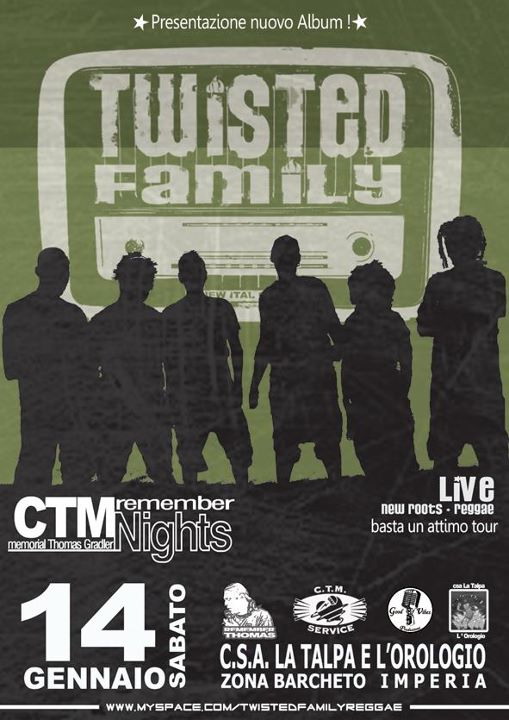 Domani sera, sul palco della 'Talpa e l'orologio' di Imperia, nuovo appuntamento con la musica live. Dopo artisti del calibro di Afica Unite, Far Too Loud, Bud Spencers Blues Explosion e molti altri, la prima presentazione del nuovo album della Twisted Family.