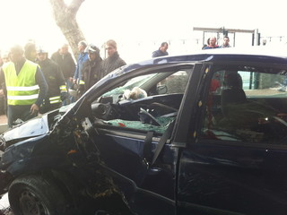 Un giovane sui 20 anni, L.C., residente nella città di confine, si è cappottato con la sua auto, una ford fiesta color blu scuro, compiendo un volo di una ventina di metri, dopo aver perso il controllo del mezzo.