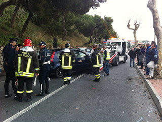 Ventimiglia: rocambolesco cappottamento in via Biancheri, ferito un giovane