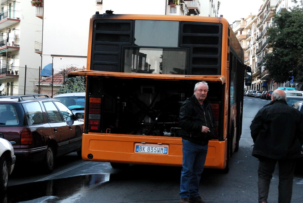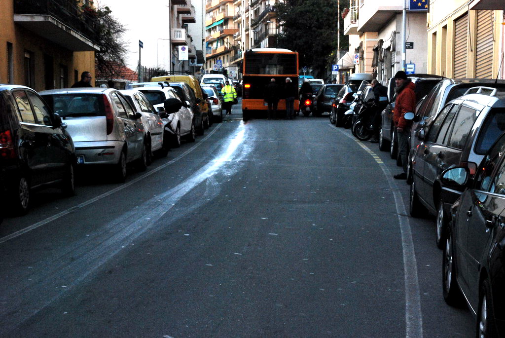 Sanremo: perdita d'olio di un bus in via Martiri, che viene chiusa al traffico